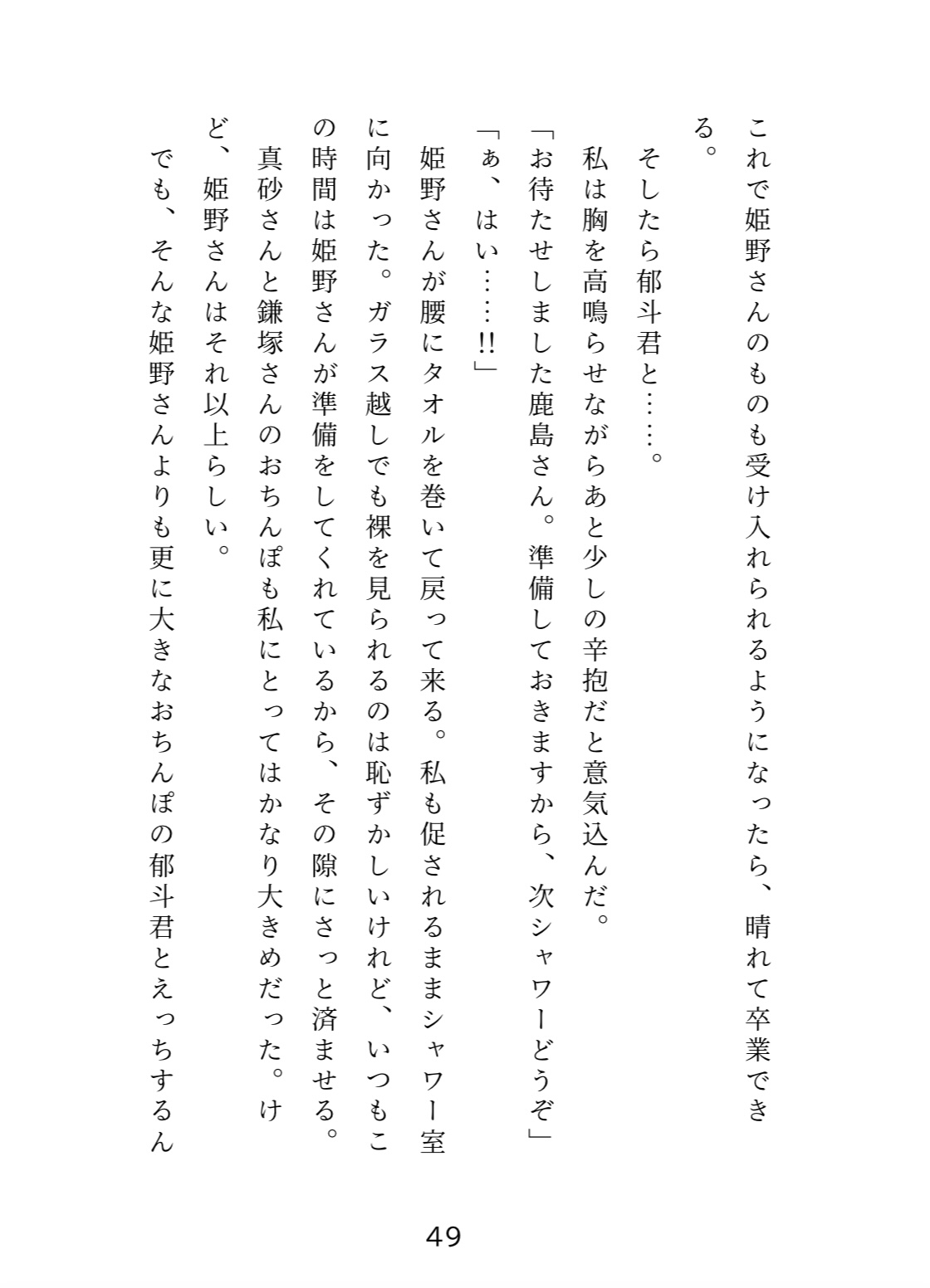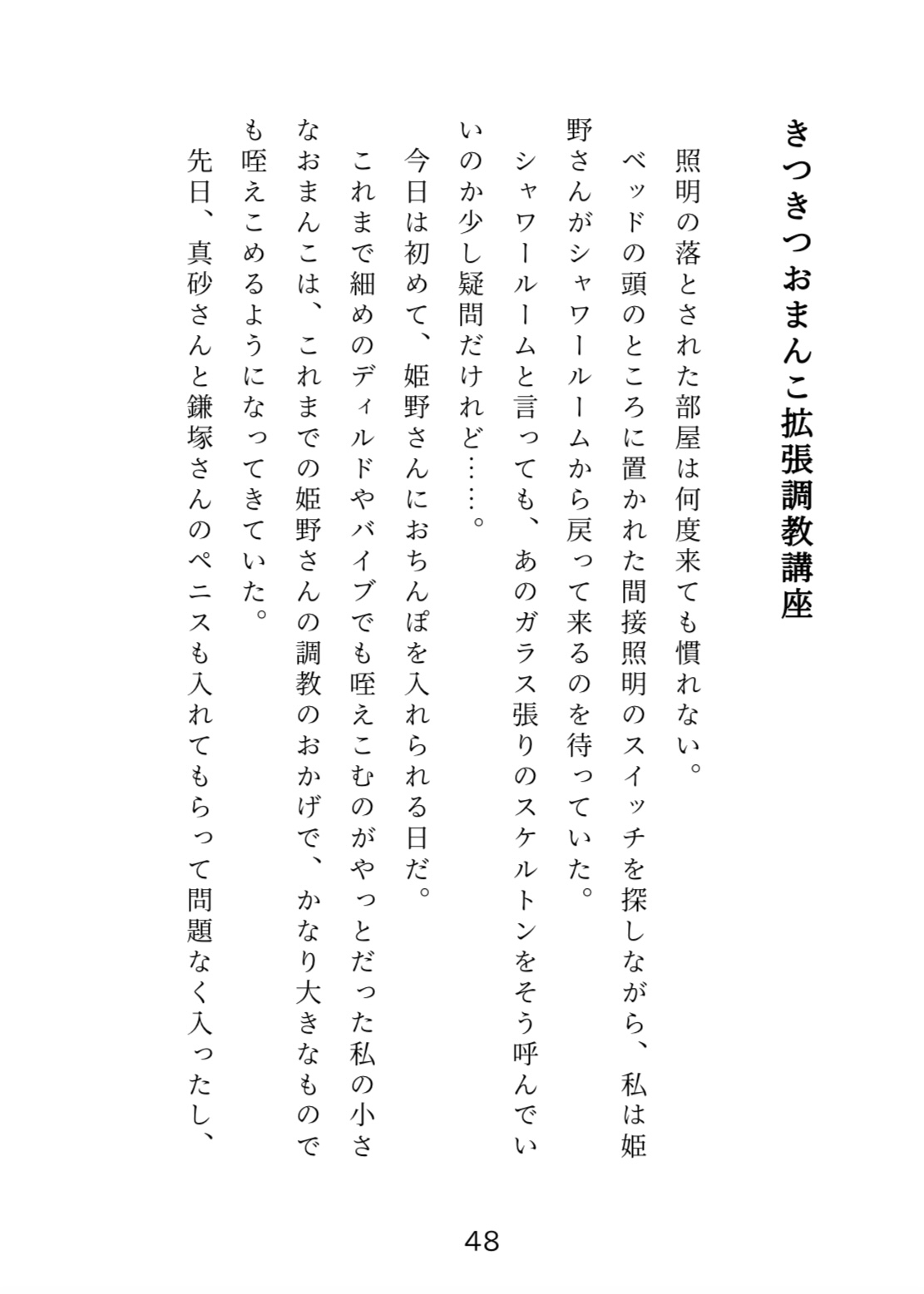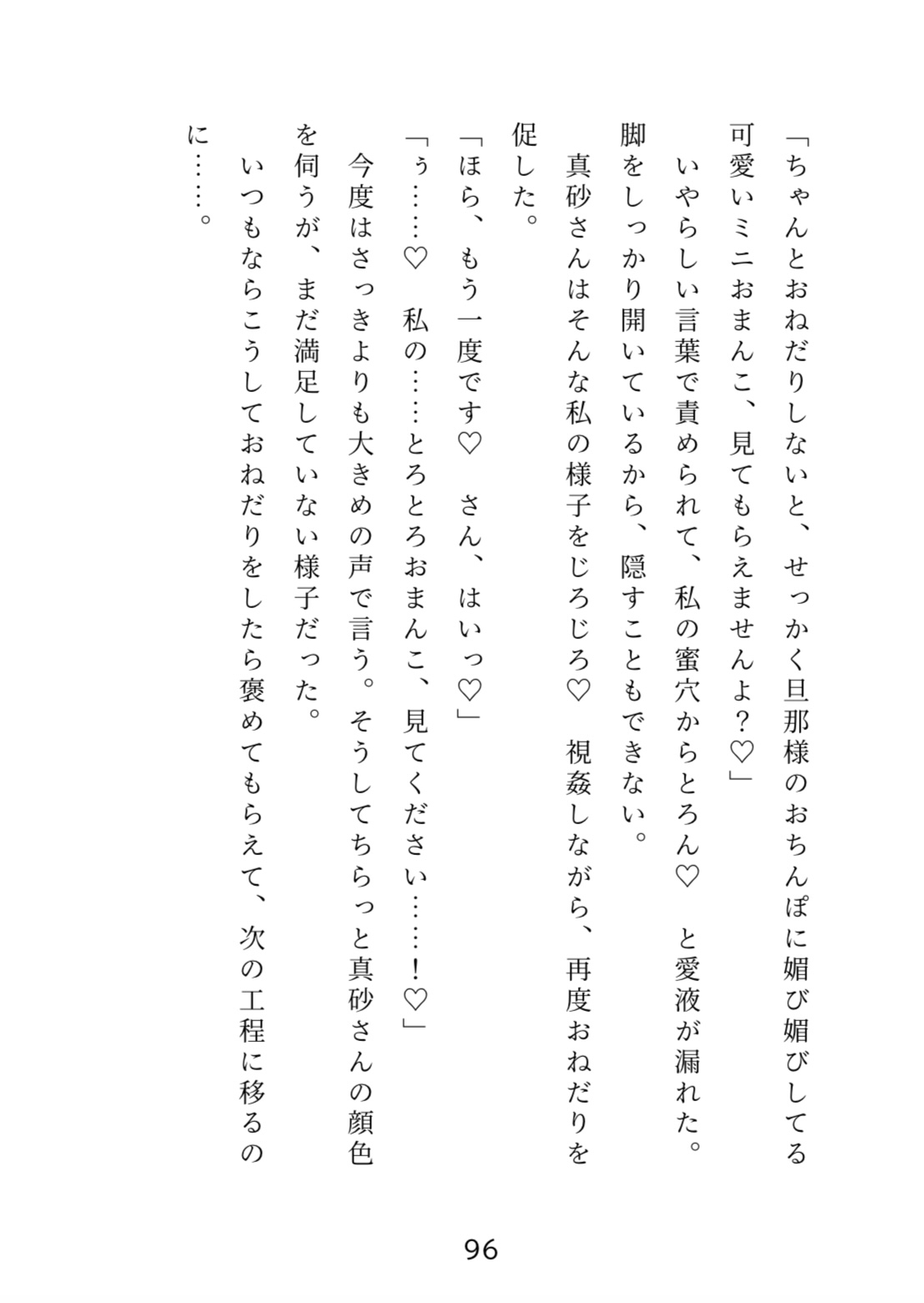結婚するまで性交渉を禁止する法律が施行された近未来日本。めでたく大好きな鹿島郁斗くんと入籍した私(あなた)は、彼との初めてのセックスでペニスを受け入れることができず、行政から補助金も出るという「おまんこ調教教室」に通うことを決める。ポピュラーな習い事とはいえ彼以外とえっちをすることに抵抗を抱くものの、個性豊かな講師に優しく指導されて、彼好みのおまんこを目指します。3人の調教師と郁斗くんとの本番えっちを収録した短編集。