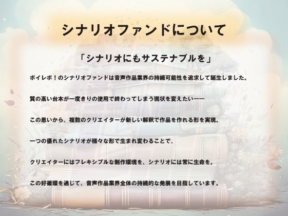 音声作品をもっとフレキシブルでサステナブルに!をテーマに立ち上げられたボイレボのシナリオファンド!賛同いただいたバイカレ!様より人気シナリオの放課後どすけべロッカーが登場!AI利用・商用利用もOK!※規約あり