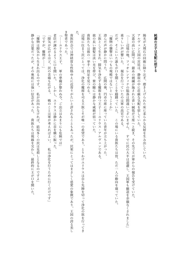 アルヴェン王国の王子ユリウスは、瘴気に侵された地を浄化する聖なる力を持ち、民から敬愛されていた。