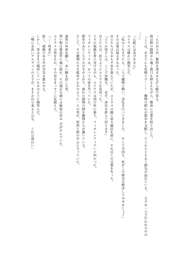 原因を探るべく単身で向かったユリウスは、異形の魔物たちを操る黒髪の男・ゼノと対峙する。