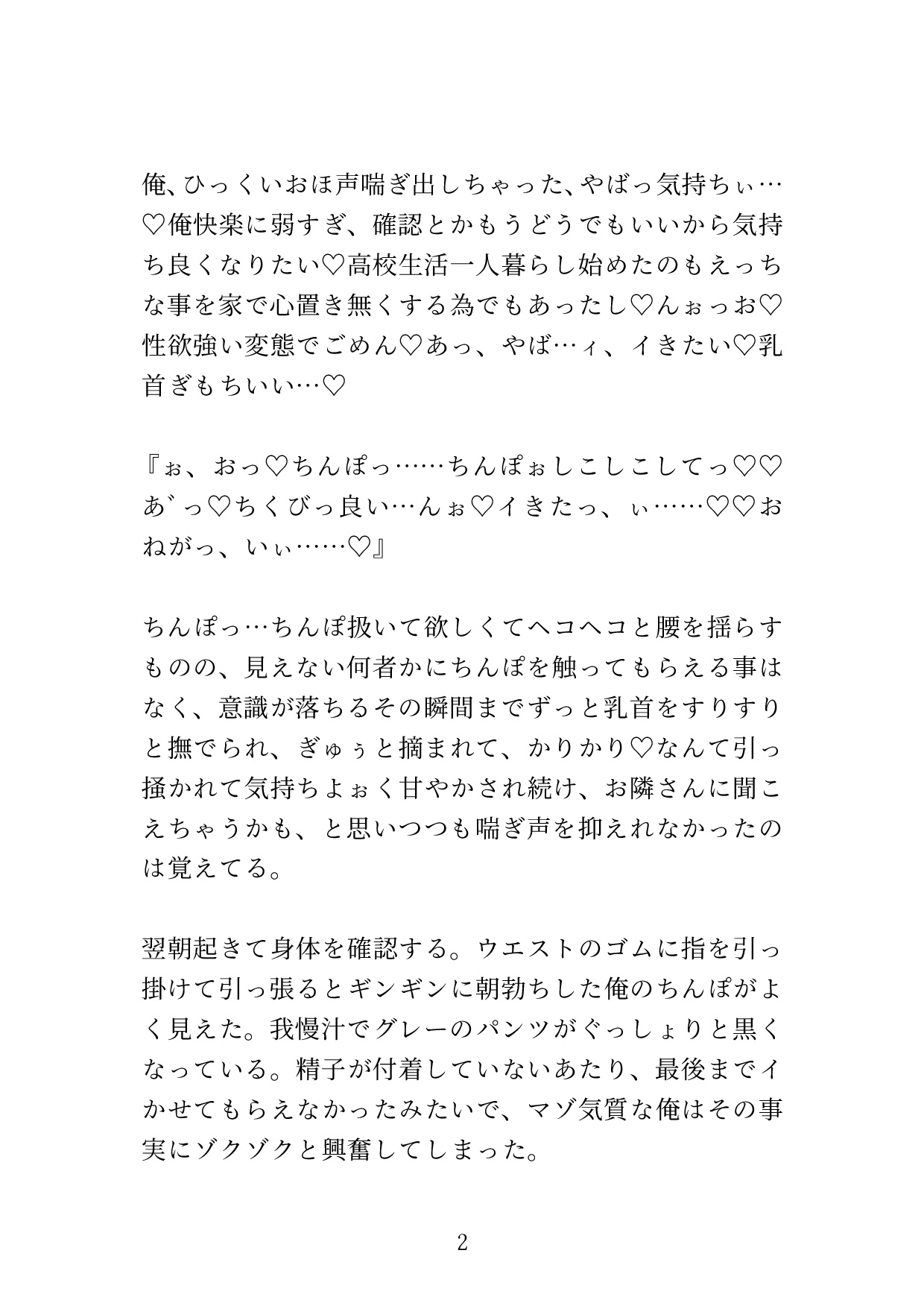 親元を離れ、ボロアパートで一人暮らしを始めると、何とそこはえっちな事故物件だった!?見えない何者かの手によってドMな男主人公がメス堕ちさせられる物語