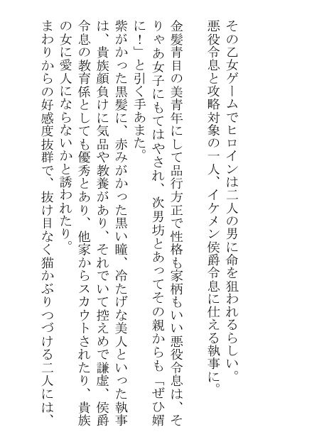 バッドエンドを知っていながら放っておけなく、執事から守ろうとするも、その敵意が自分に向けられてしまい「代わりに抱かせてください」と脅迫されて・・・。