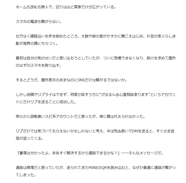政府はそれらを「特異事例」と定義し、国土交通省に特別部署〈特異事例住宅対策局〉を設置していたが、数が多すぎて対応が追いついていない。そんな折、SNS上に突如現れた「ぴるるん@心霊相談承ります」という祓い屋アカウントが、数多の心霊トラブルを軽い口調で次々と解決してしまう。詐欺まがいの態度にもかかわらず、被害報告は皆無。相談者たちはむしろ“神”のごとく感謝し、いつしか膨大なフォロワー数を獲得してゆく。