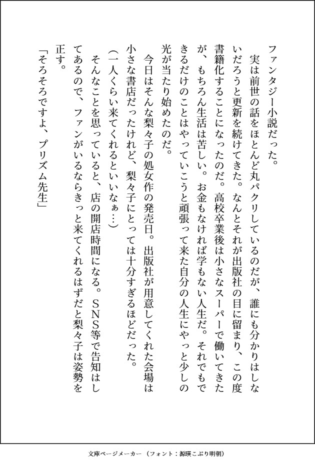 今世では平凡な見た目でハードモードな人生の荒波を何とか乗り切っていた。自分の前世を基にした小説が認められて少しでもお金が増えることが嬉しいが、これからはとんでもない金持ちが隣にいることになるでほぼ自分のお金を使う機会がなくなってしまう。前世、今世ともに処女。25歳。