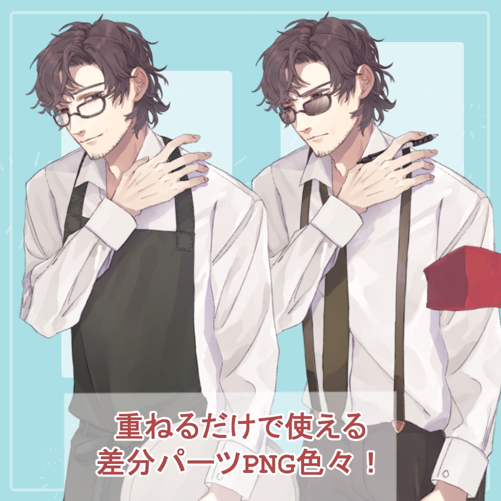 この作品は「記者のおじさん私服(ジャーナリスト)・制服(潜伏用白シャツ)の全身立ち絵SET(眼鏡、カメラ、帽子等のオマケパーツ付き) (RJ01371814)」と内容の重複があります。