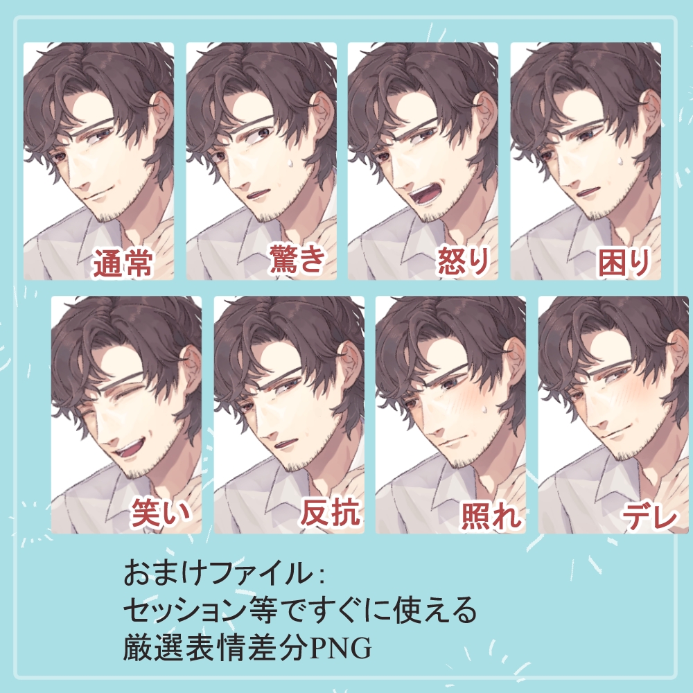 厳選した表情差分PNG・8個のおまけファイルも作成しました