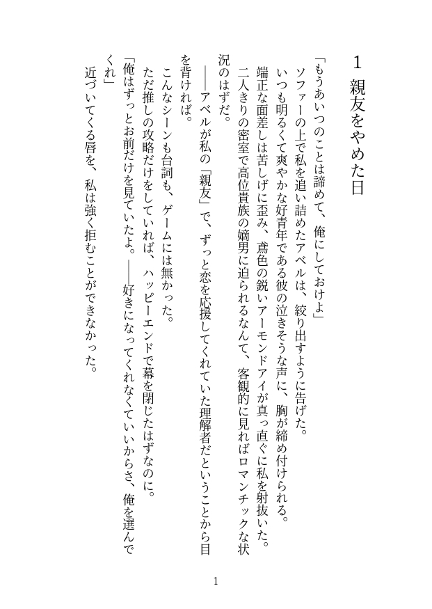 あなたのことを誰よりも近くで応援し、ライナルト攻略に協力してきた。その一方で、あなたへの恋心と執着を燻らせていた。1 親友をやめた日