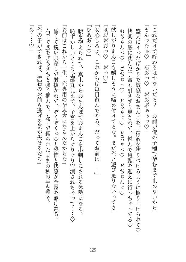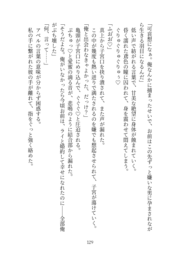 「可哀想になぁ。俺なんかに捕まったせいで、お前はこの先ずっと嫌いな男に孕まされながら生きる羽目になるんだ」