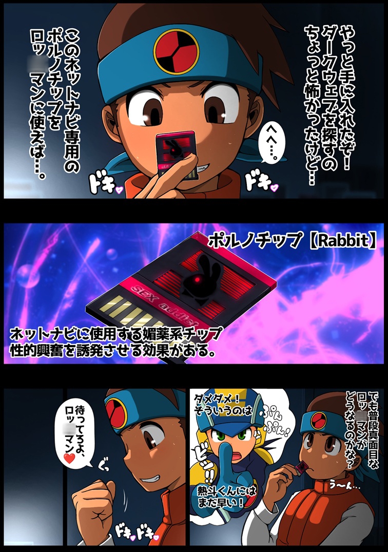 ネットナビへの媚薬効果があると言われるポルノチップを手に入れた熱〇くん。普段エッチなサイトを見るのを妨害してくるロッ〇マンへの仕返しとしてそのチップを使ったが、想像以上の効果があった為にとんでもないエッチな展開になってしまうのだった。
