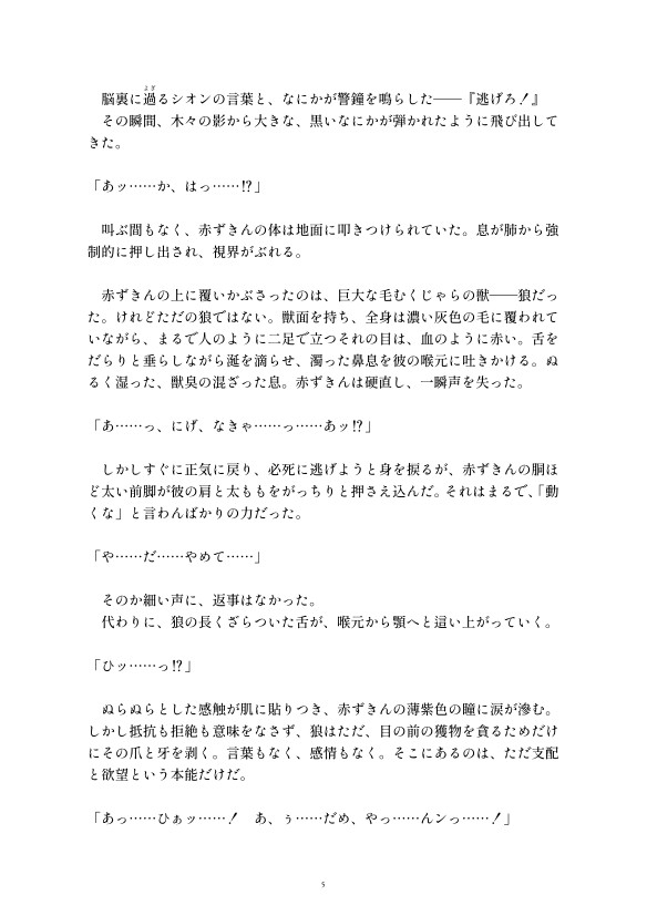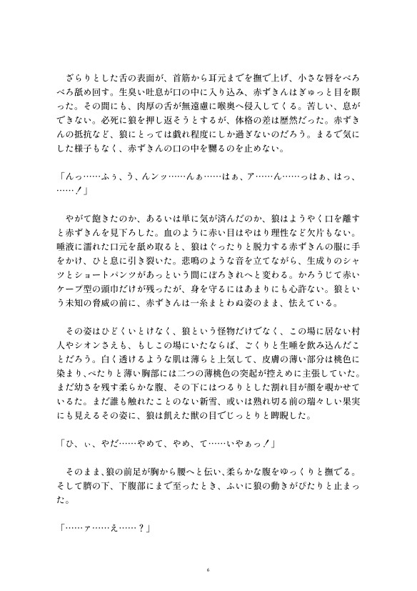 村人に愛されて育った純粋培養カントボーイ赤ずきんが森で狼に襲われ、中出しされて無理矢理番にさせられてしまう話。