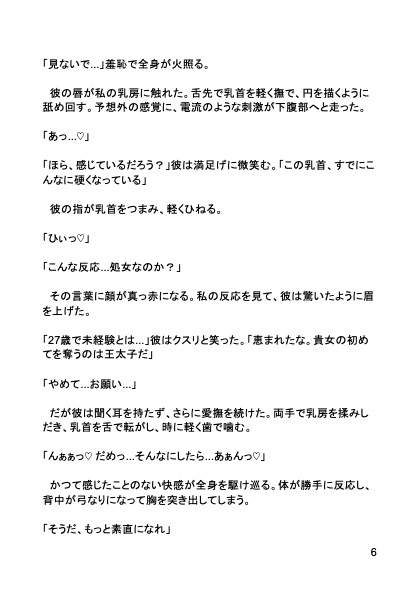 勇者として魔王を倒してほしいという国王の願いを断ろうとした瞬間、王太子アレクサンダーが「この女性は私の運命の番だ」と宣言し、彼女を自室へと連れ去る。抵抗する涼子だったが、王太子の熱い視線と強引な愛撫に体は素直に反応してしまう。