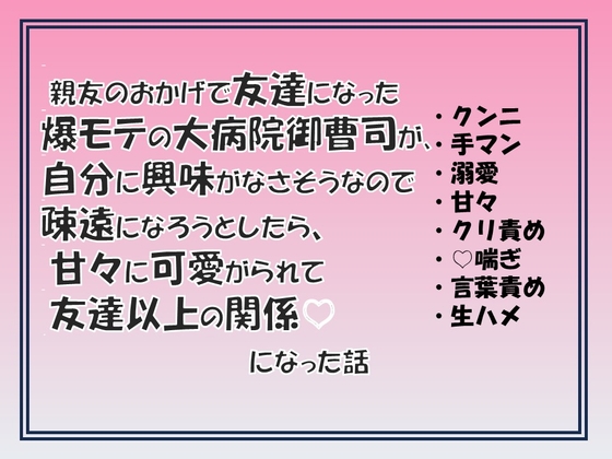![親友のおかげで友達になった爆モテの大病院御曹司が自分に興味がなさそうなので疎遠になろうとしたら、甘々に可愛がられて友達以上の関係になった話 [画像提供:DLsite.com] 親友のおかげで友達になった爆モテの大病院御曹司が自分に興味がなさそうなので疎遠になろうとしたら、甘々に可愛がられて友達以上の関係になった話](https://dldgirls.dojin.com/wp-content/uploads/2025/05/img_RJ01384198_img_main.jpg)