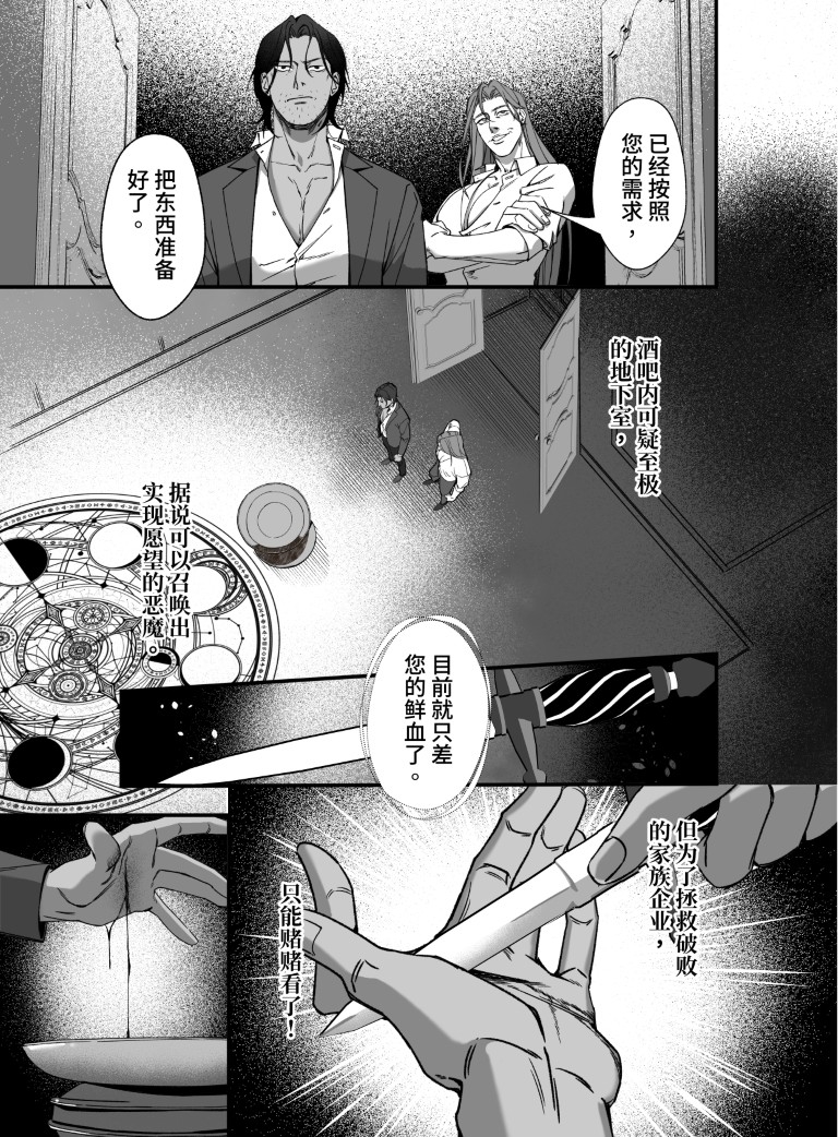 男主从一间由恶魔经营的酒吧通过召唤得到了两名恶魔来改善自己的公司情况,抱着公司继续由亏转盈的决心,直男的他自我说服与同样身为男性的恶魔发生了关系却意外反被吃干抹净。失去第一次的男人气急败坏却又无可奈何,可偏偏他们仅通过一晚便长大成“人“,他再也无法自欺欺人的方式去看待同样阳刚的恶魔。偏偏恶魔的欲望又很高,几乎无时无刻在任何场合都想要交合,无论是出外同游,亦或者重要的交际场合。