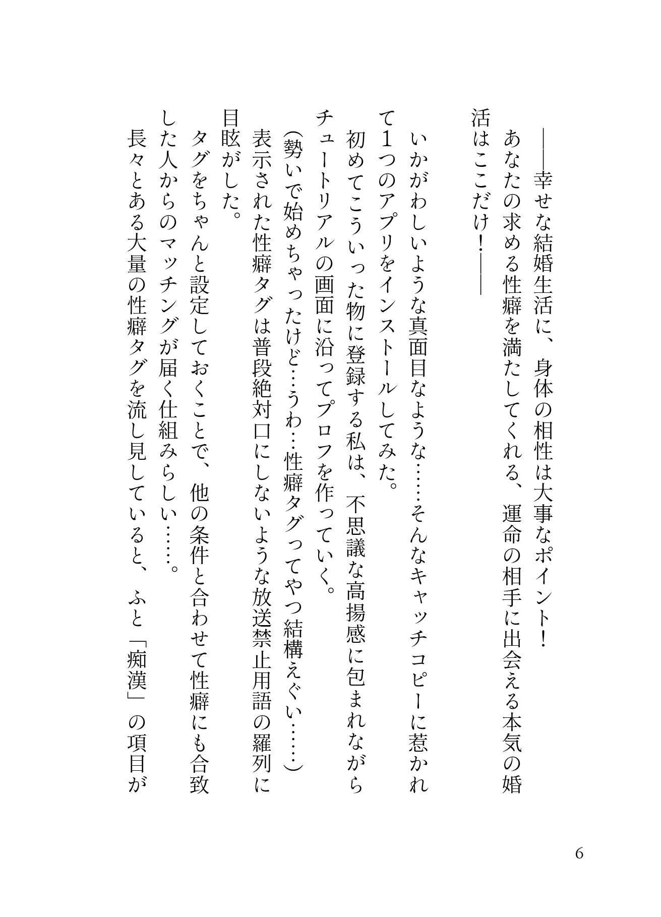 けれどある日、ネットで見つけた“性癖特化型”の婚活マッチングアプリを試してみることに――。