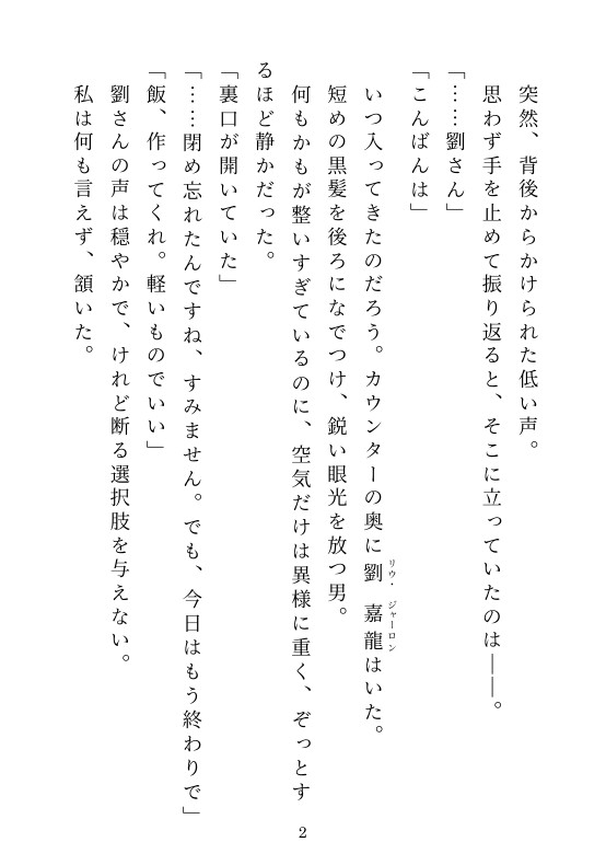 冷酷無比な中華系マフィアのボス。無表情で、感情を見せないその男は、突然、私を「連れて行く」と言い出し――。