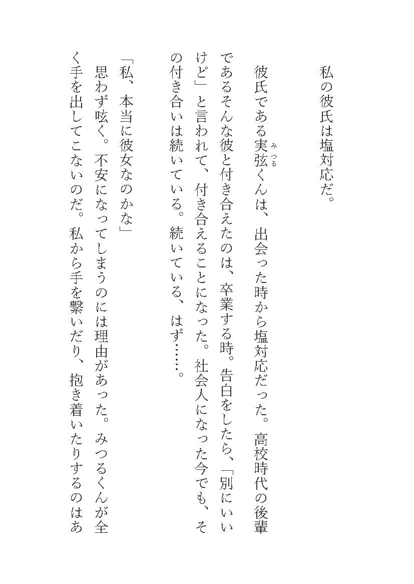 出会った時から塩対応で、付き合った後もずっと手を出してこない彼氏の実弦に不安になっていた。