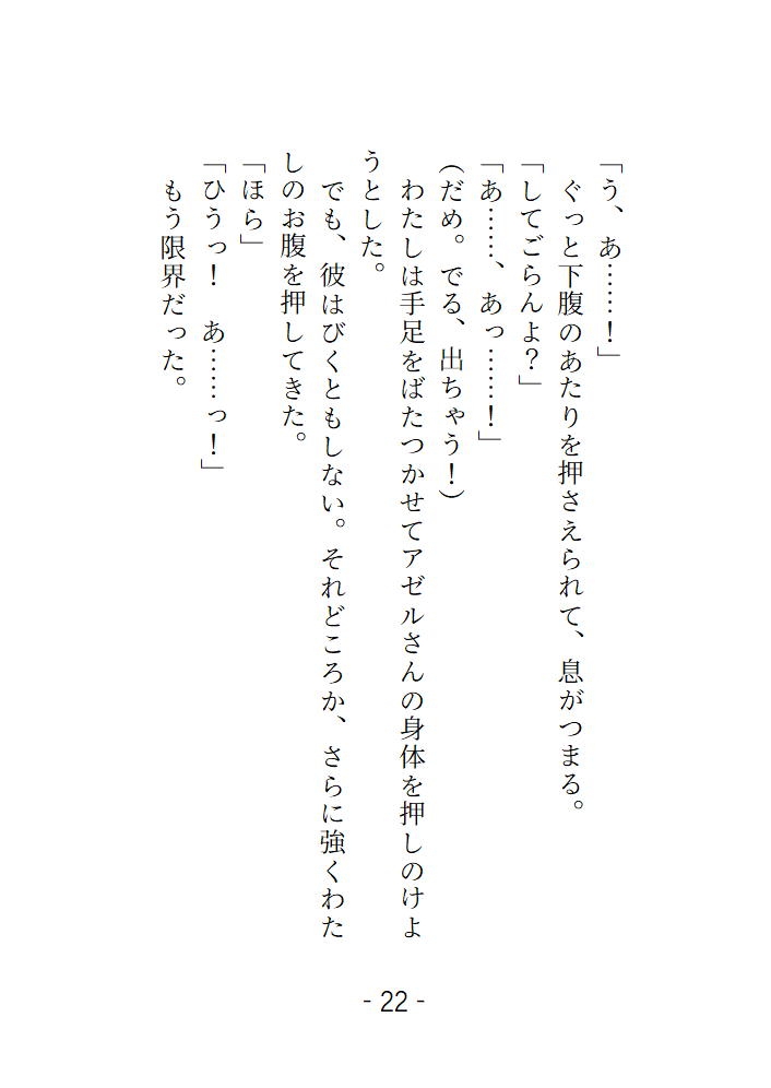 夜中に尿意で雑木林で排尿しようとするのだが、そこにアゼルが現れて――。