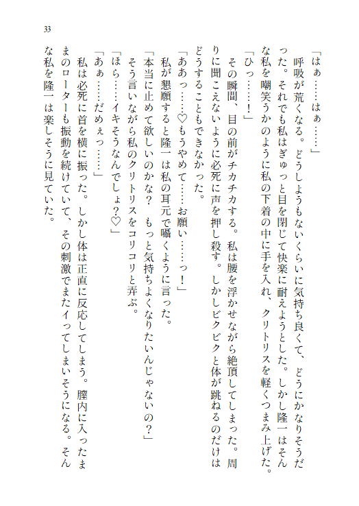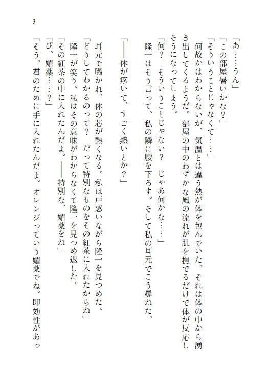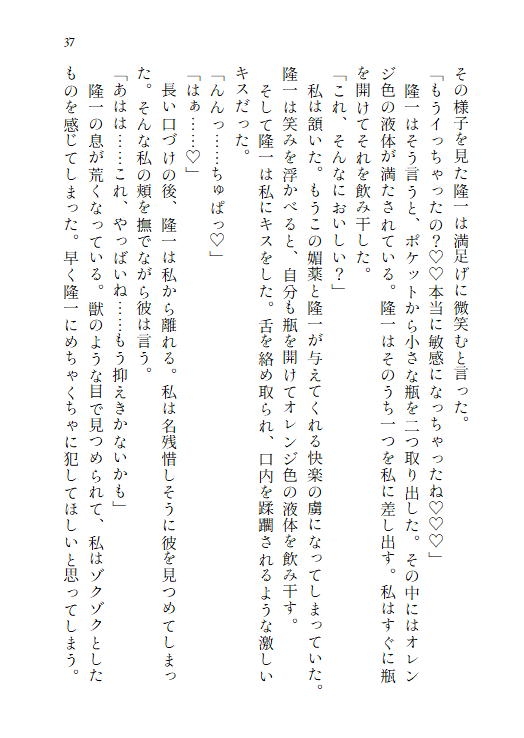 隆一は昔から私のことが好きだったことを告白し、媚薬によって熱くなった体を弄ぶ。