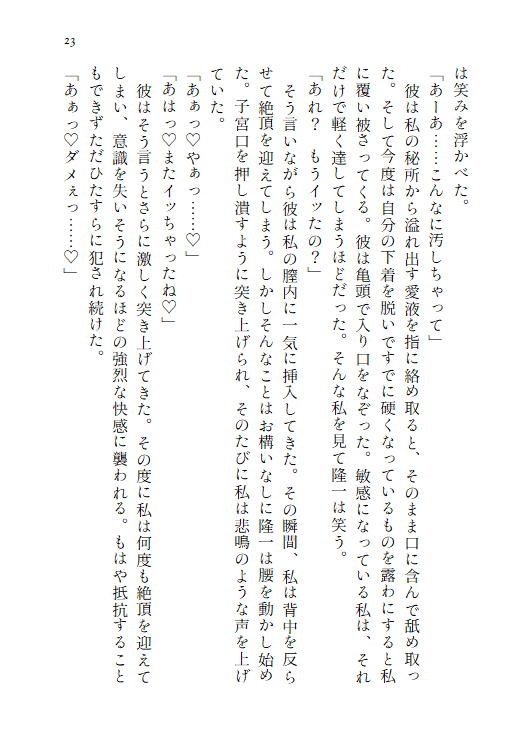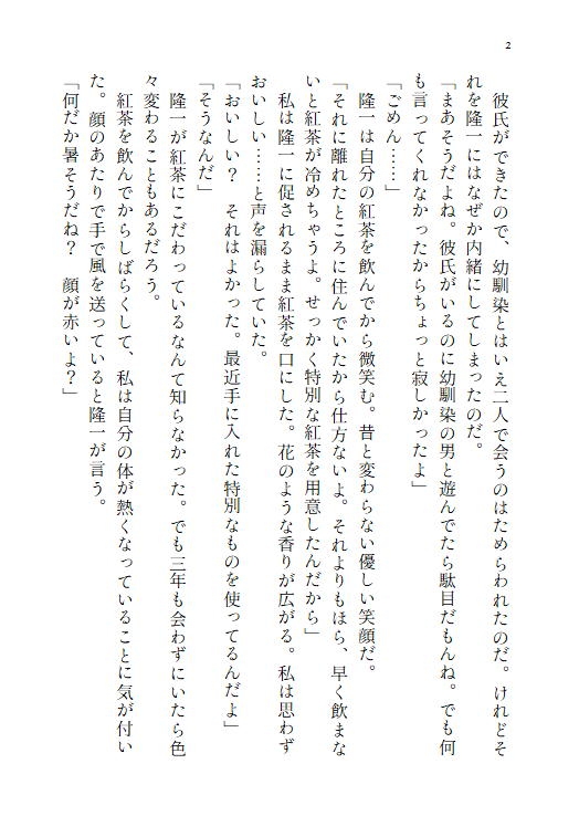 幼馴染の隆一に結婚することを報告に行く私。久しぶりに会った隆一はあなたを優しく迎えてくれたが、彼が出してくれた飲み物の中にはオレンジと呼ばれる強力な媚薬が入れられていた。