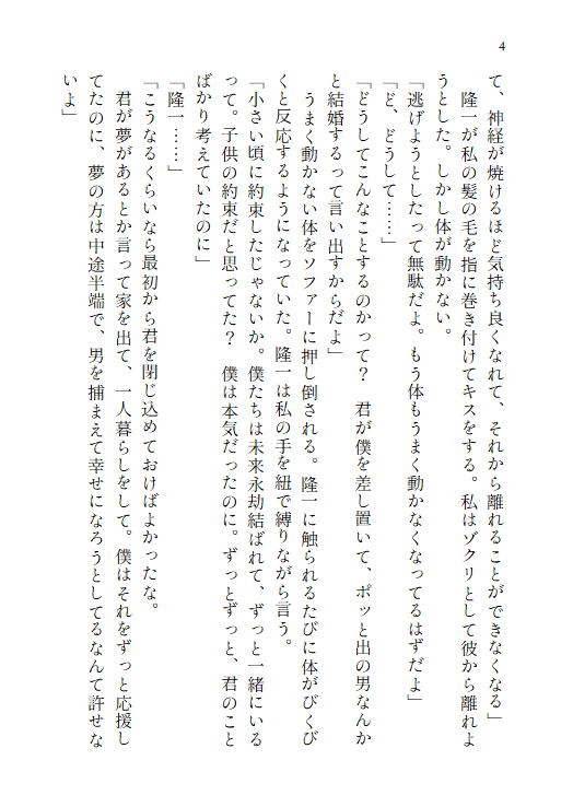 ジャンル:連続絶頂 / 薬物 / 幼なじみ / 閉じ込め / 命令/無理矢理 / 執着攻め / 乳首責め / 耳舐め /