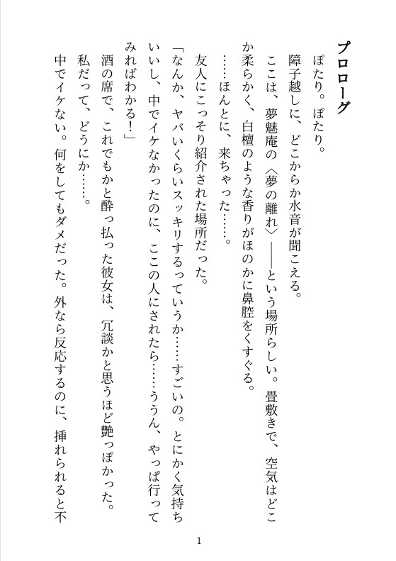 中でイケない悩みを抱えたヒロインが訪れたのは、癒しのマッサージ店「夢魅庵」。現れたのはイケオジ風の施術師・ルシアン。実は彼の正体は夢魔――心も身体もとろけるような愛撫で、クリ責めからGスポ責め、道具責め、そして中イキ開発まで徹底的に快楽を教え込まれて……。