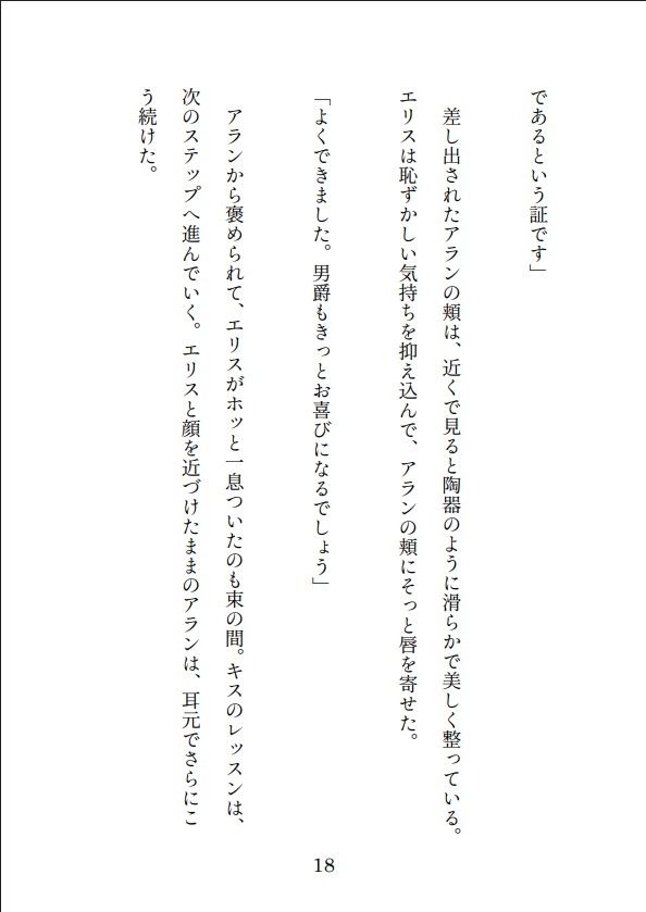 そう語るアランの丁寧すぎる手ほどきは、淑女の嗜みであるキスの作法から始まり、やがて閨事(ねやごと)の奥深くへとエリスを導いていく。