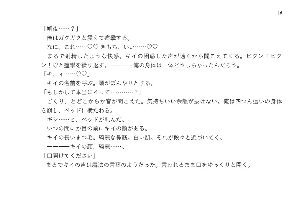 ぎこちない腰振り、自身のエロくない喘ぎ声……。えっちな行為にお尻が疼き、メスイキをしてしまう朔夜。