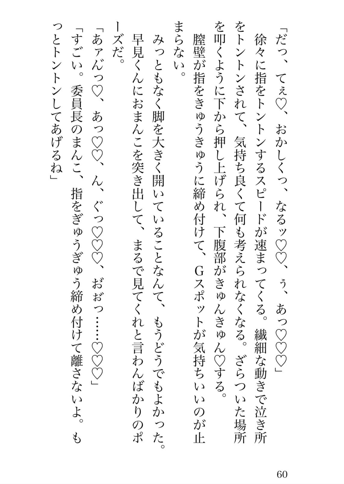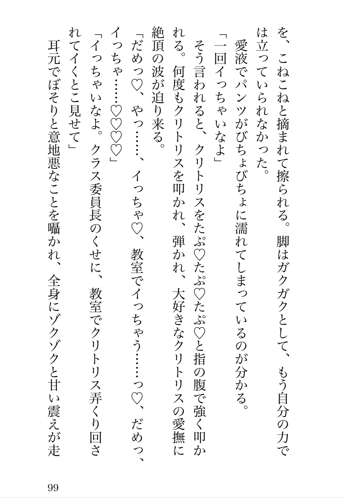 「誰もいない教室で自分の机にしがみついてポルチオとんとんされて、お尻の穴も指でずぼずぼされて気持ち良くなっちゃうなんて、美咲はいけないクラス委員長だなあ……」