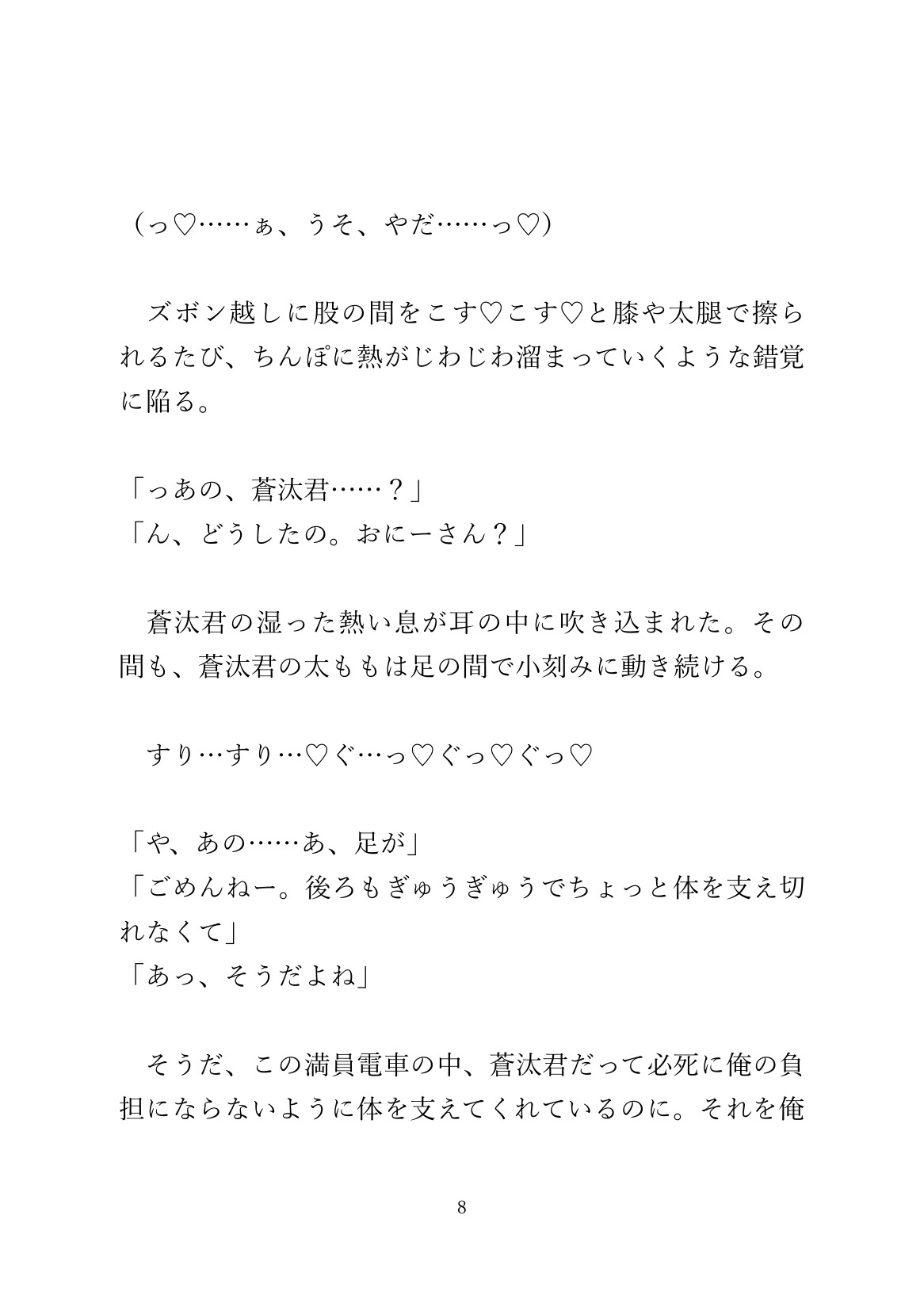 チャラい高校生に懐かれたサラリーマンが、満員電車の中でいやらしい事をされる話。