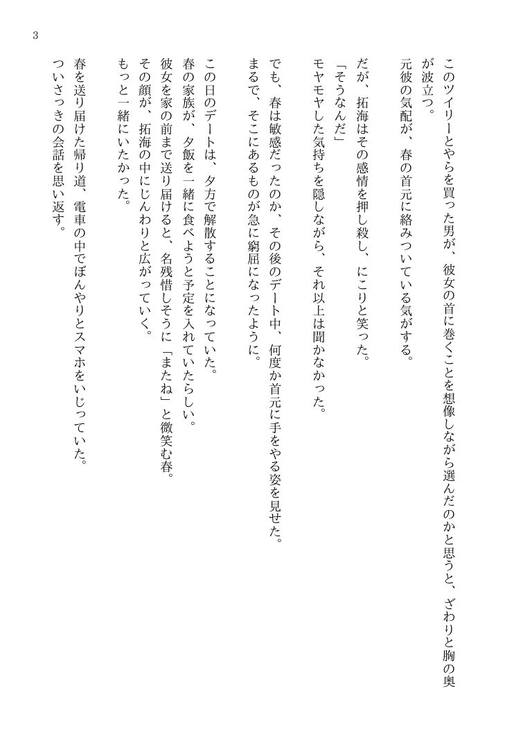 ラブラブデート中、細い首に巻かれているスカーフがとっても似合っていて、どこの?と軽い気持ちで聞いたら元カレからのプレゼントだと発覚。