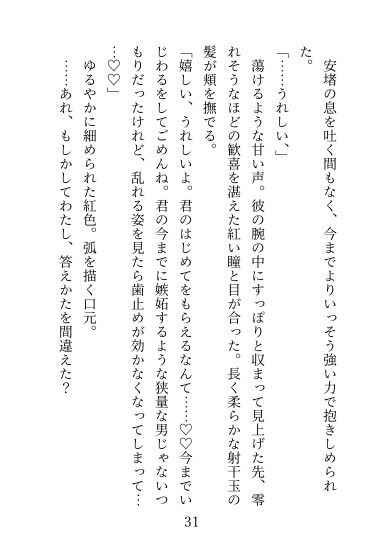 「嬉しい、うれしいよ。君のはじめてをもらえるなんて……♡♡今までいじわるをしてごめんね。君の今までに嫉妬するような狭量な男じゃないつもりだったけれど、乱れる姿を見たら歯止めが効かなくなってしまって……♡♡」