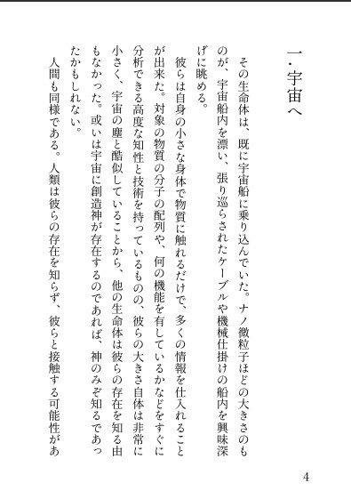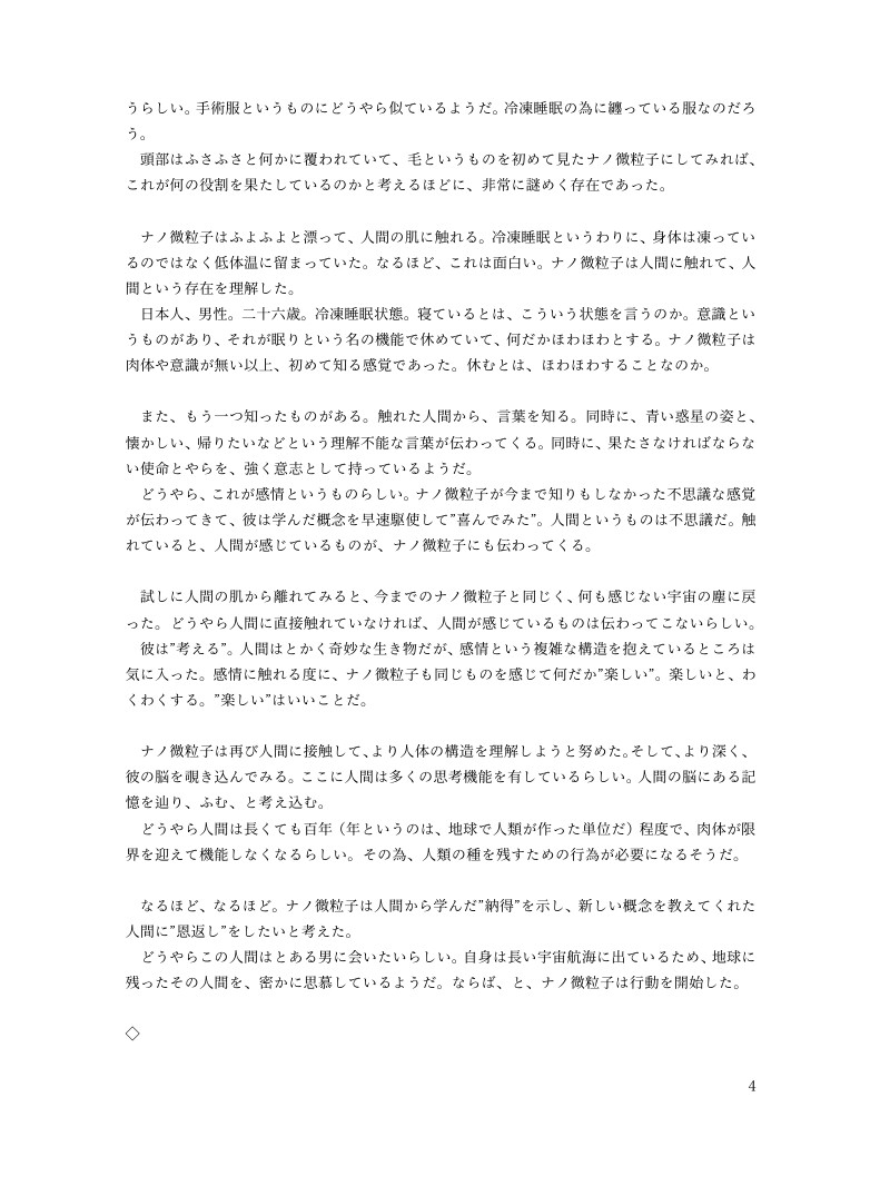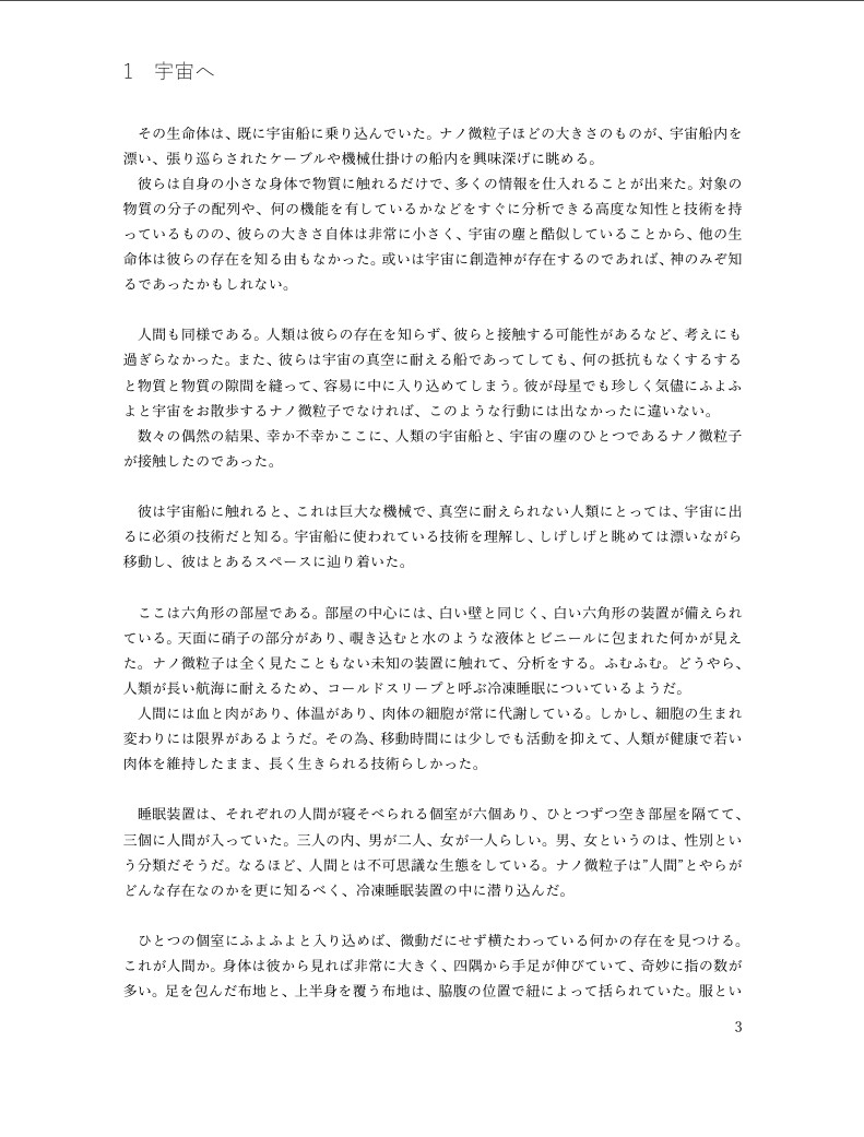 ネメシス星への旅は順調であったが、冷凍睡眠中に宇宙に漂う、知恵あるナノ微粒子が宇宙船に潜り込み、人間とナノ微粒子が出会ってしまう。