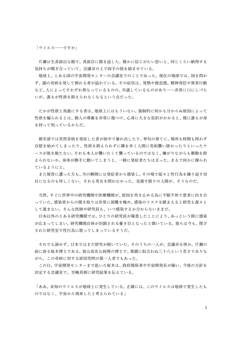 地球に残る数少ない宇宙飛行士である片瀬月臣(かたせつきおみ)は、病理の専門家であり恩師でもある柾木悠(まさきゆう)の原因究明の結果、奇病をもたらす原因のウイルスが飛来されていると推察されるネメシス星に出立することになる。