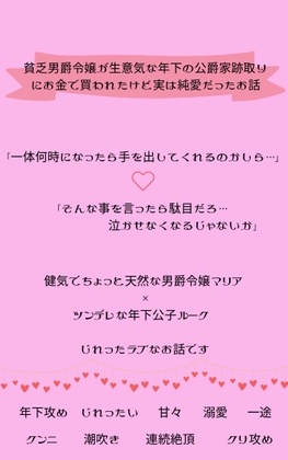 「貧乏男爵令嬢が生意気な年下の公爵家跡取り にお金で買われたけど実は純愛だったお話」のFANZA価格データはありません