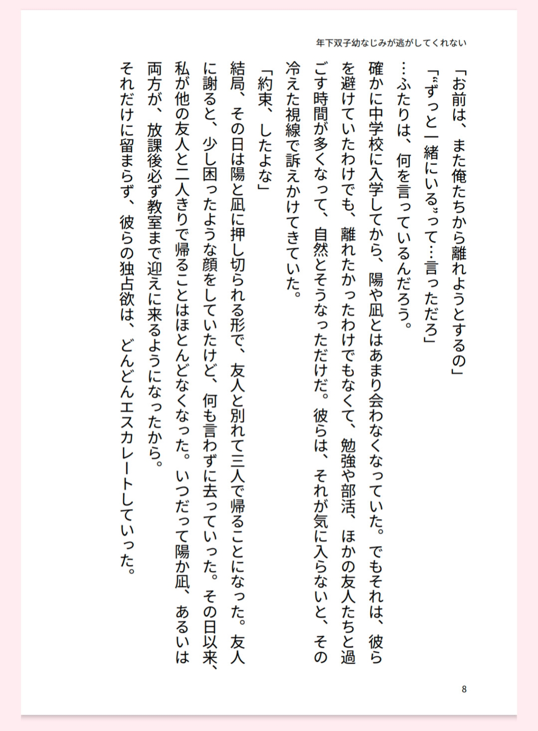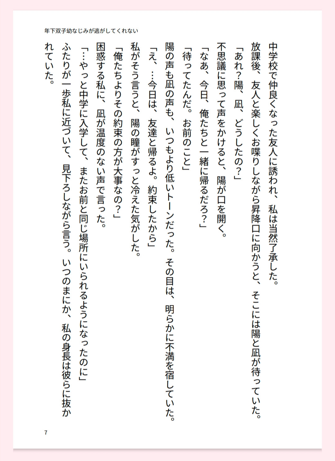 幼い頃から弟のように可愛がってきた双子たちだったが、一緒に過ごすうち、いつのまにか彼らの執着は度を越していた。