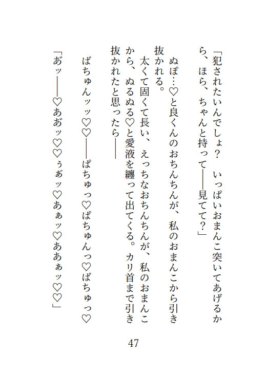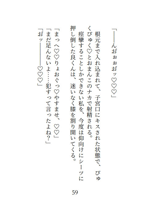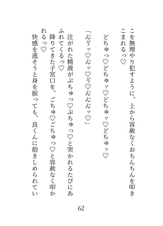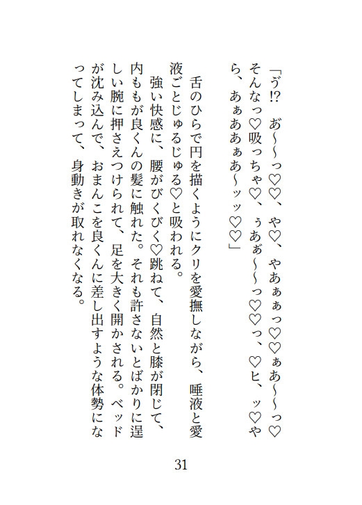 ハート喘ぎ 濁音喘ぎ 連続絶頂 中出し(連続) 絶倫 クンニ 乳首カリカリ 乳首責め クリ責め 手マン 潮吹き キス キスハメ フェラチオ 正常位 種付けプレス 寝バック後背位 言葉責め ポルチオ責め 女性視点 擬音表現 etc