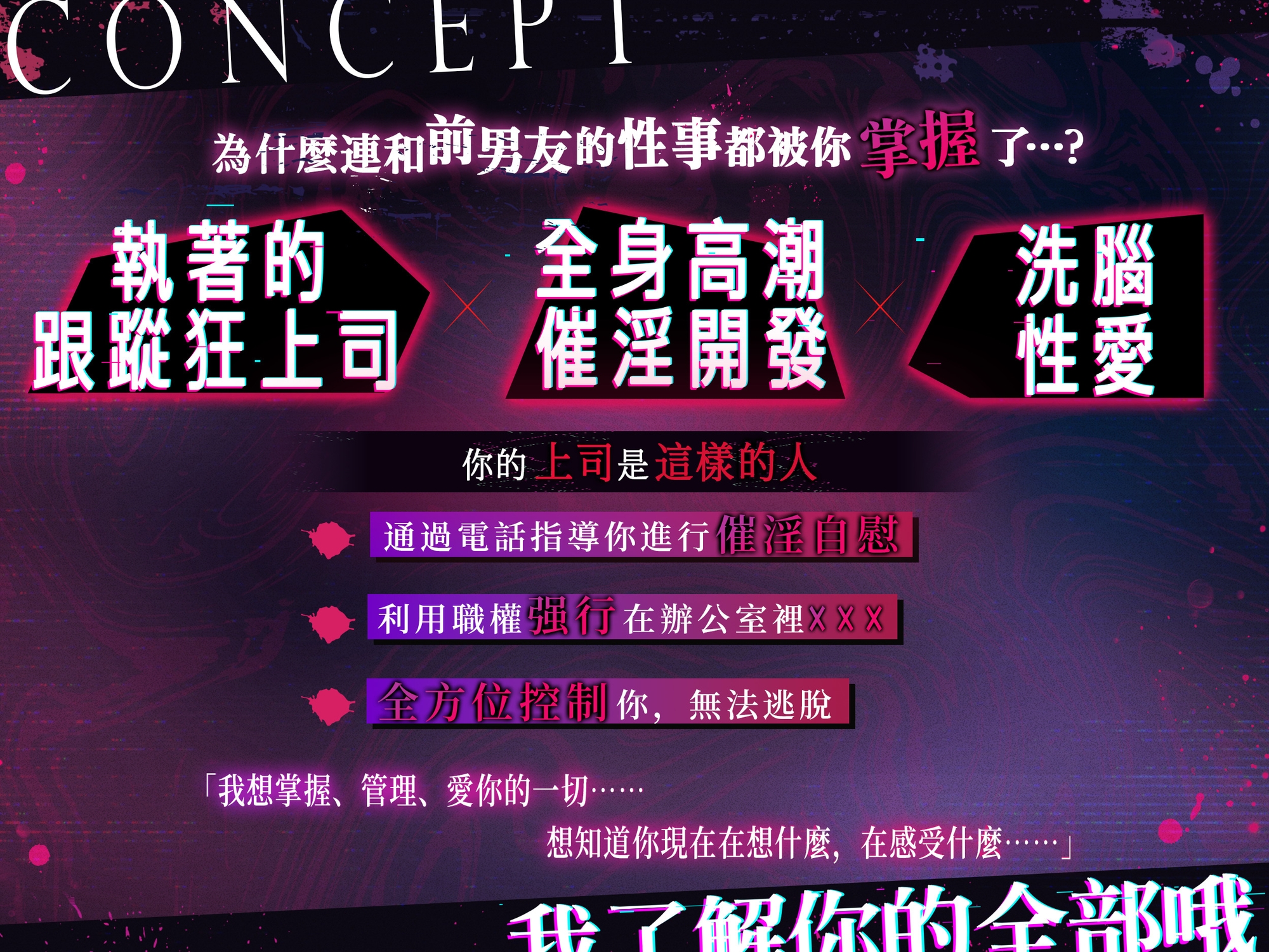 醉酒的你不小心把能幹的上司當成前男友打了電話。在沒有意識到錯誤的情況下,你按照他的指示脫掉了內衣……開始慢慢地撫摸著自己敏感的地方。雖然中途你恢復了意識,感到些許罪惡感,但背德感和快感戰勝了一切,你的手無法停止。第二天,你被那個上司叫到了辦公室……。