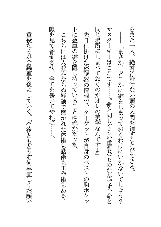 潜入捜査を行なっていた大企業で、ついに真木を葬る決定的な証拠のありかにたどり着いた怜里。しかし、あと一歩で手が届くというところで、真木の魔の手が文字通り怜里の体に伸びる--。