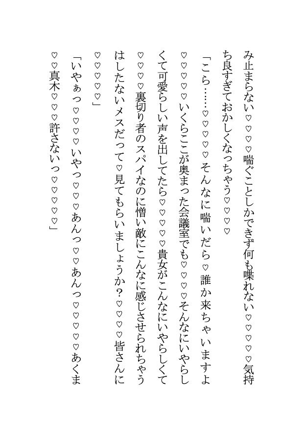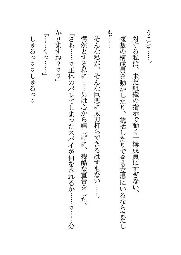 優秀なスパイ・霧谷怜里(きりたに れいり)。彼女はついに、長年追いかけてきたターゲットである武器商人・真木誠司(まき せいじ)との接触に成功する。 怜里の手が、ついに真木に届こうとしたとき、 「残念でしたね、ミス・霧谷♡オレの仕掛けた罠にまんまとひっかかってくれて……♡♡♡」 真木はその性技で、怜里を堕としはじめる– 。 シチュラブズ初の長編作品。 悪い男に、気高い心を堕とされる快感を、どうぞお楽しみください。
