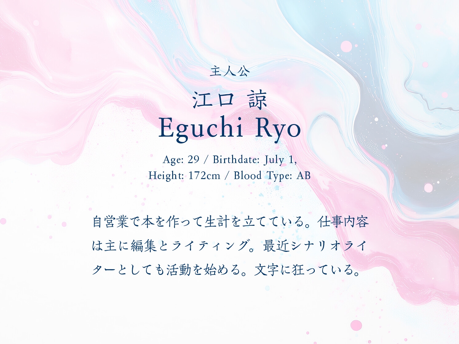 人と深く関わらず、静かな日常を愛する物書き。