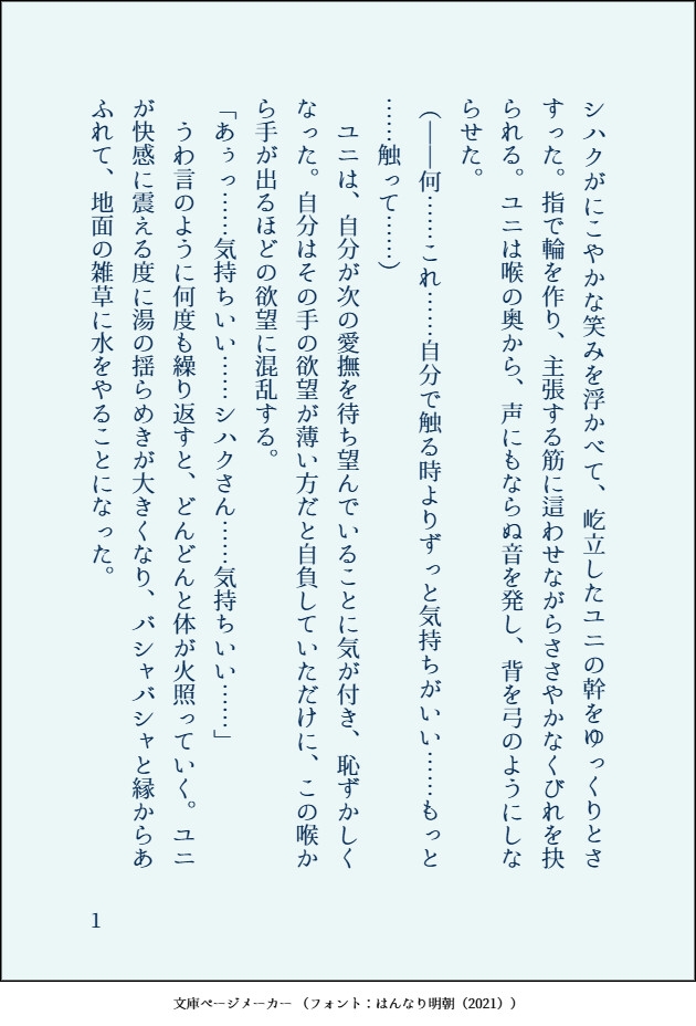 獣人の少年ユニは、両親を失い故郷を追われ、人里離れた家で一人、竹カゴ作りに日々を費やしていた。孤独なユニの心を慰めるのは、耳と尻尾を隠さずにいられる小さな家だけ。ある日、マーケットで竹カゴを売るユニの元に、偶然現れたのは、かつてユニの両親を奪った種族である「人間」のシハクだった。 ひょんなことからシハクを家に招き入れたユニは、彼の不器用な優しさに触れ、少しずつ心を癒していく。 なぜシハクはユニの元に現れたのか? 獣人と人族という違いを乗り越え、二人の間に芽生えた感情は、果たして「愛」へと昇華するのか? 傷つきながらも前向きに生きるユニと、彼の心の扉を叩くシハクの、切なくも温かい絆の物語。【ユニ】受