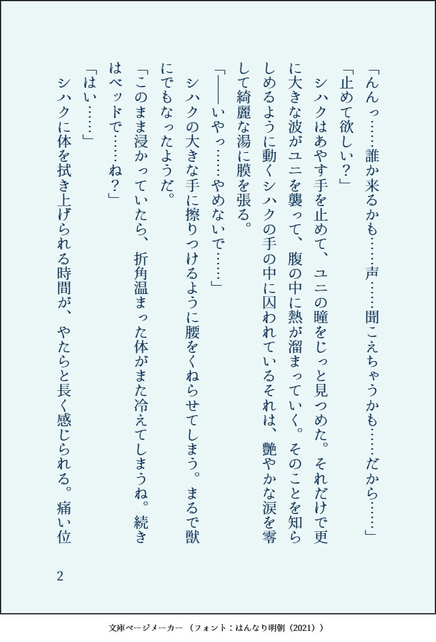 獣人と人族という違いを乗り越え、二人の間に芽生えた感情は、果たして「愛」へと昇華するのか? 傷つきながらも前向きに生きるユニと、彼の心の扉を叩くシハクの、切なくも温かい絆の物語。