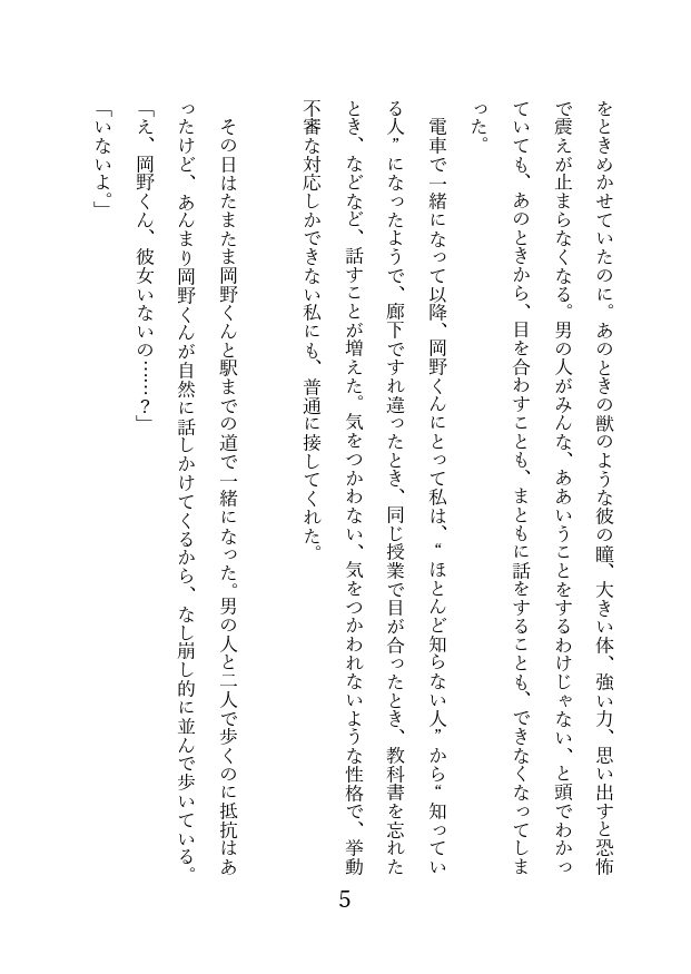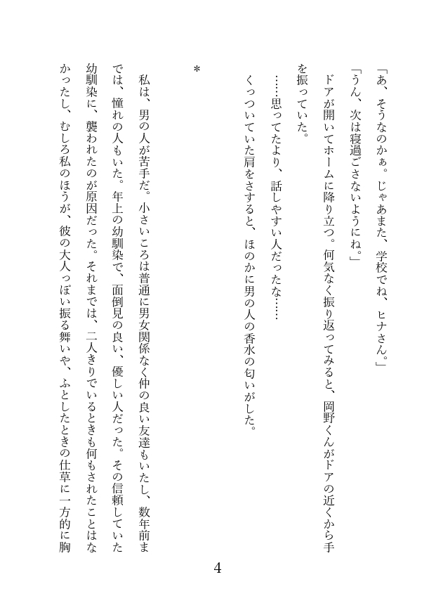 「私ね、そういうので嫌な思い出があって……それから男の人とかも苦手になっちゃって、家族とか、友達とかにも気をつかわせちゃってて……」