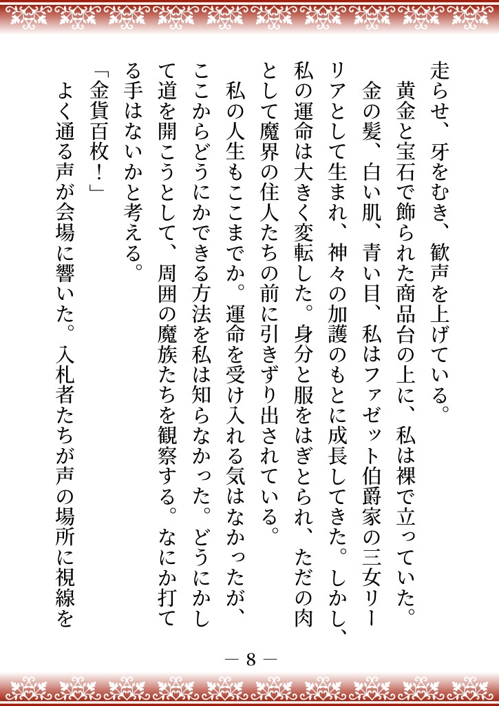 性悪継母に逆らった伯爵令嬢リーリアは、魔界に売られて、裸でオークションにかけられる。