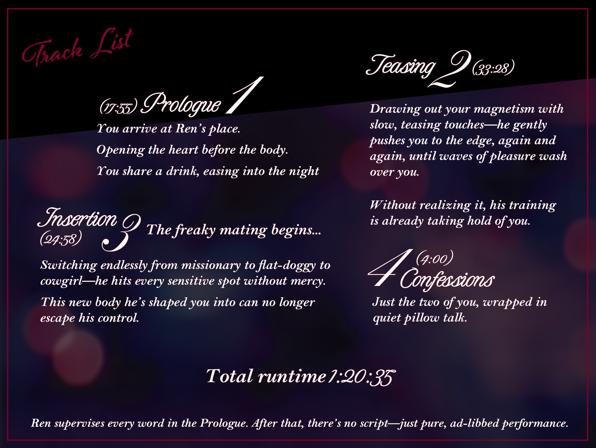 With that confession, Ren’s mating lesson begins—through a deep night of unlocking.Total runtime: 1:20:35