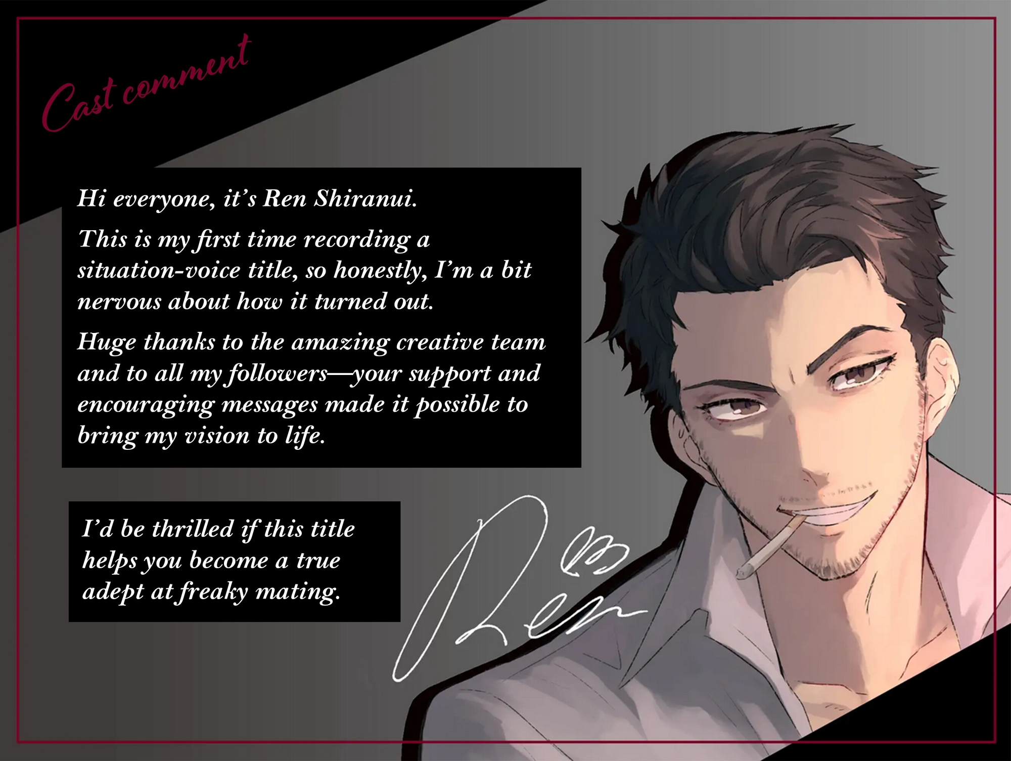 → Seek a deeply fulfilling self-pleasure moment.After listening to one of Ren’s masturbation audios and hearing him fall apart, you find yourself wanting to know what it feels like to lose control like that.