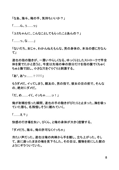 寝ている彼女のすぐ横で、親友に乳首を弄ばれ咥えさせられ犯される背徳NTR。屋上での野外エッチ、温泉旅行での寸止め調教、逃げ場のない快楽に堕ち、彼女を抱けなくなった体は親友の極太チンポを求め喘ぐ――全編エロ責め尽くしのNTR調教BL