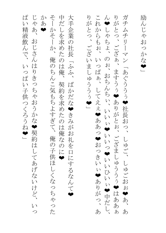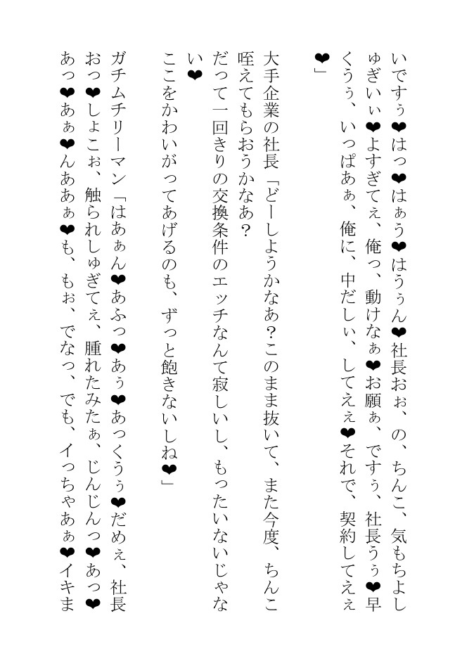 ガチムチリーマンたちが、上司だったり、取引先のお偉いさんだったり、金持ちの顧客だったりに脅されたり弱みを握られたり交換条件だったりで、がっつりどっぷりエッチするという内容。