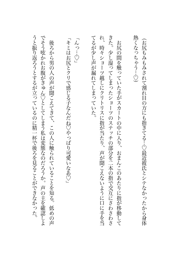 痴○専用車両だと知らずに乗った電車で会社の先輩にクリ責めされ潮吹きアクメしてしまう話