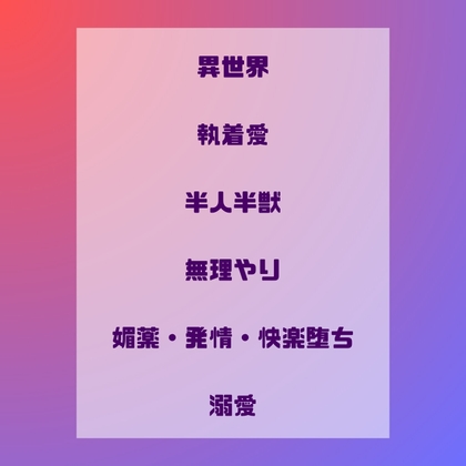 | ジャンル: | 獣人 / 快楽堕ち / 執着攻め / 溺愛 / |
